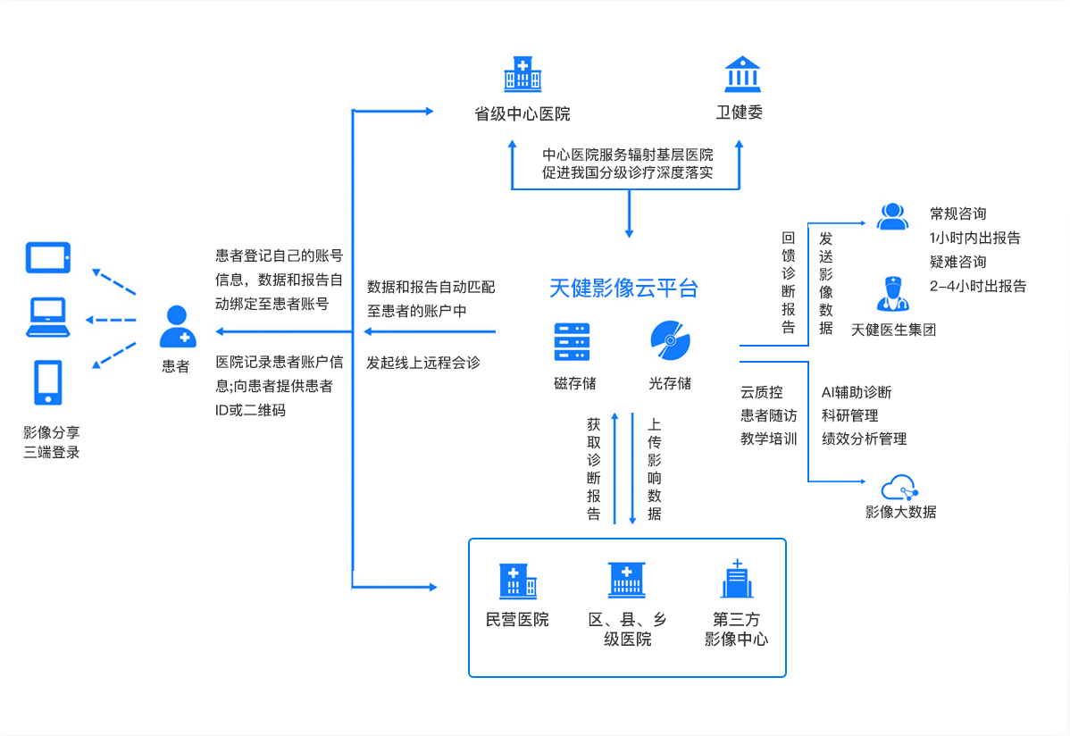 支持基于影像的云閱片、移動閱片、移動報告、影像教學(xué)、影像科研、患者云膠片、患者影像AI解讀、影像三維重建服務(wù)、影像專家問診等豐富的應(yīng)用場景。