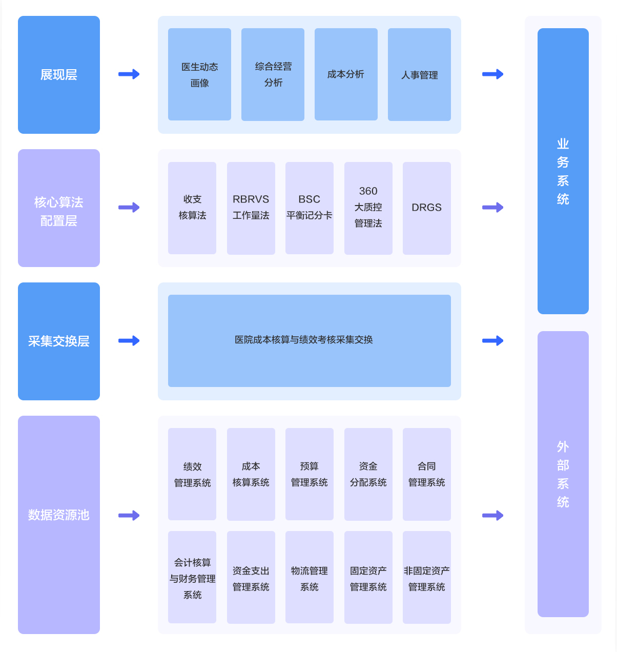 醫院成本績效智慧管理解決方案是以醫院戰略發展目標為導向,以全成本核算為基礎,以全業務績效評價為依據,集咨詢方案編寫、管理模式設計、業務內容培訓與軟件研發應用為一體的覆蓋醫院全業務科室、貫穿全業務流程的一站式綜合服務解決方案。
